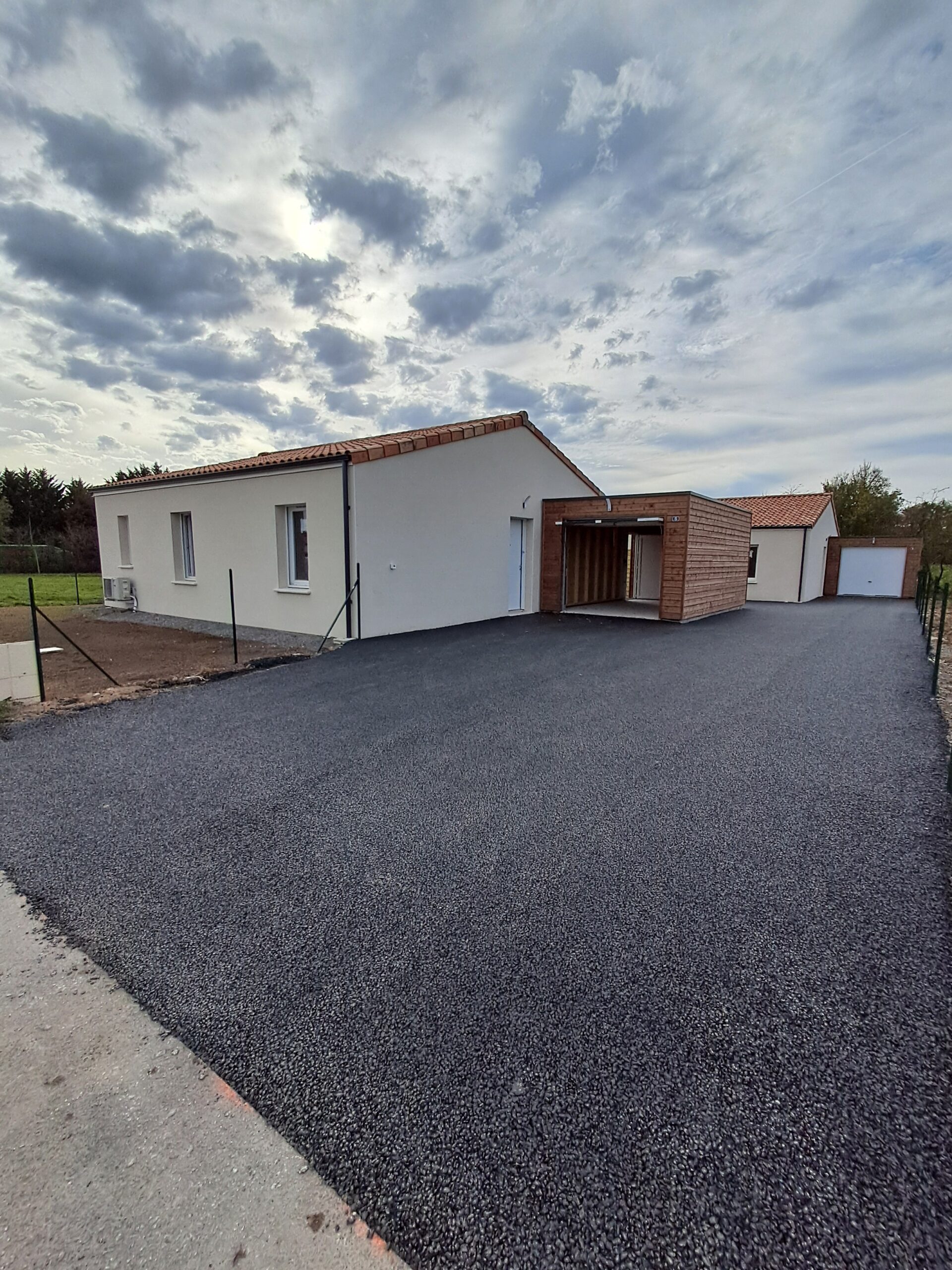 - Accès et stationnements PMR devant chaque garage, réalisés en matériaux drainants et carrossables.